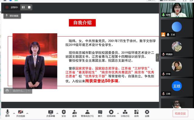 本次答辩本着“公平、公正、公开、择优”原则,通过公开展示方式,老师们根据综合表现,从候选人中选出各类别的最终名单。前期,根据评选通知要求,经过学生自主申报、班主任辅导员推荐、学院审核、我院共有2019级8名学生和2020级3名学生参加线上答辩。11位候选同学各个能力出众、经历丰富。有遨游书海的学习能手、有磨炼技能的竞赛达人、有驰骋赛场的社团骨干。他们依次就个人学习科研、任职经历、社会实践等方面进行3分钟个人陈述,并就老师个性化的提问进行作答。