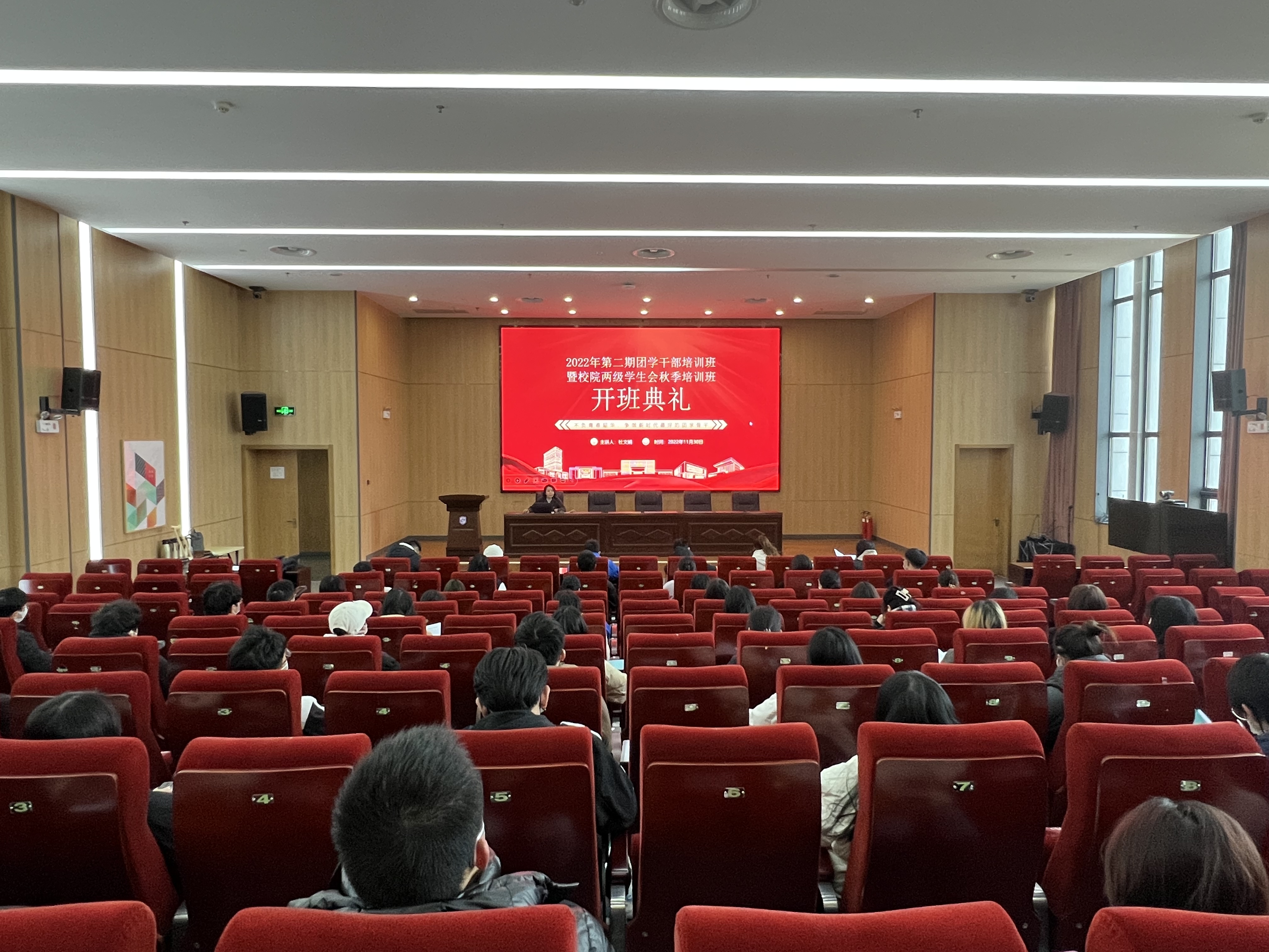 为深入学习宣传贯彻党的二十大精神,贯彻落实好习近平总书记关于青年工作重要论述,提升团学干部的整体素质,增进团学干部之间的沟通交流,11月30日中午,2022年度第二期团学干部培训班暨校院两级学生会秋季培训班开班典礼在办公楼报告厅举行。开班典礼由校团委杜文娟书记主持,校院两级70名团学骨干参加了开班典礼。