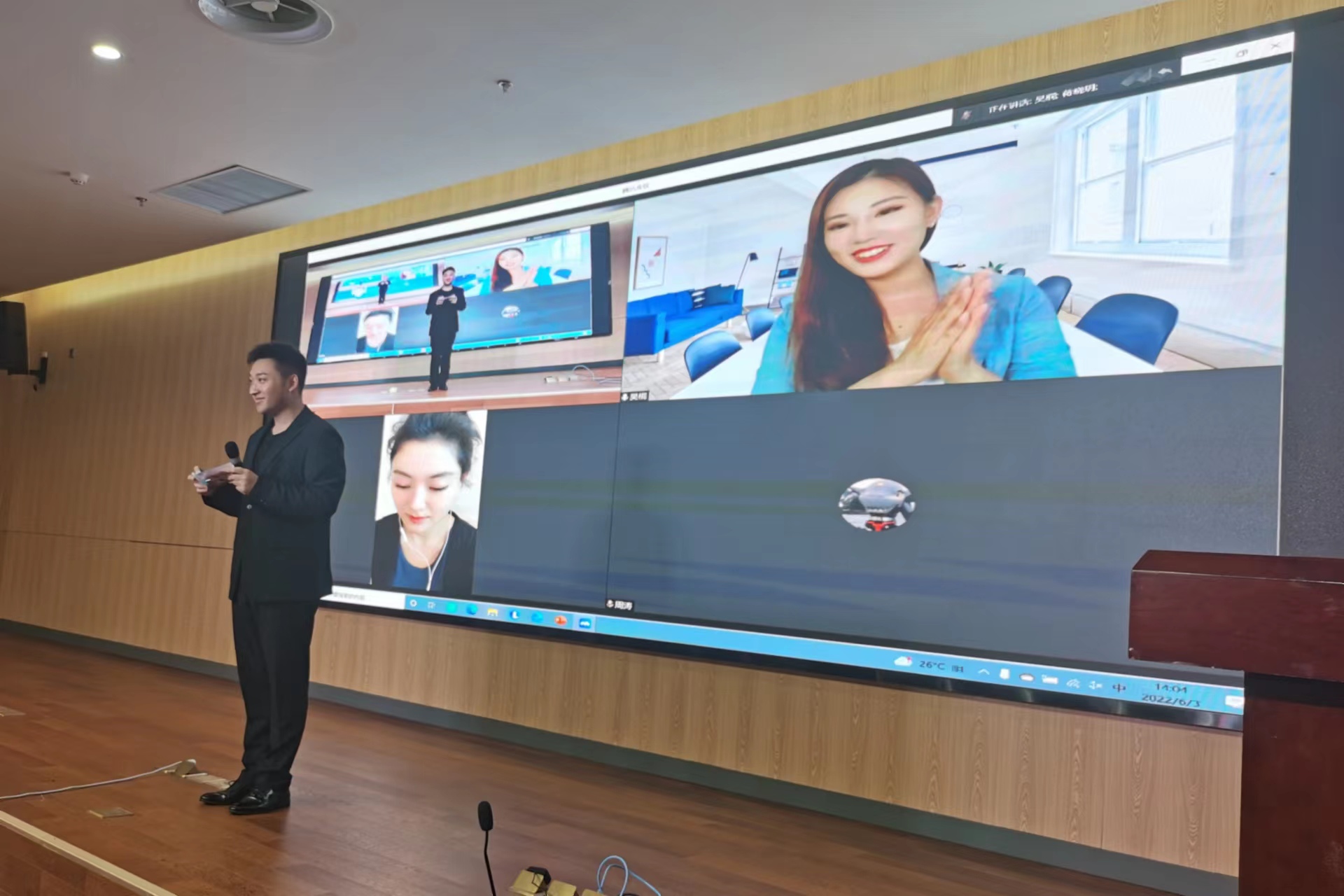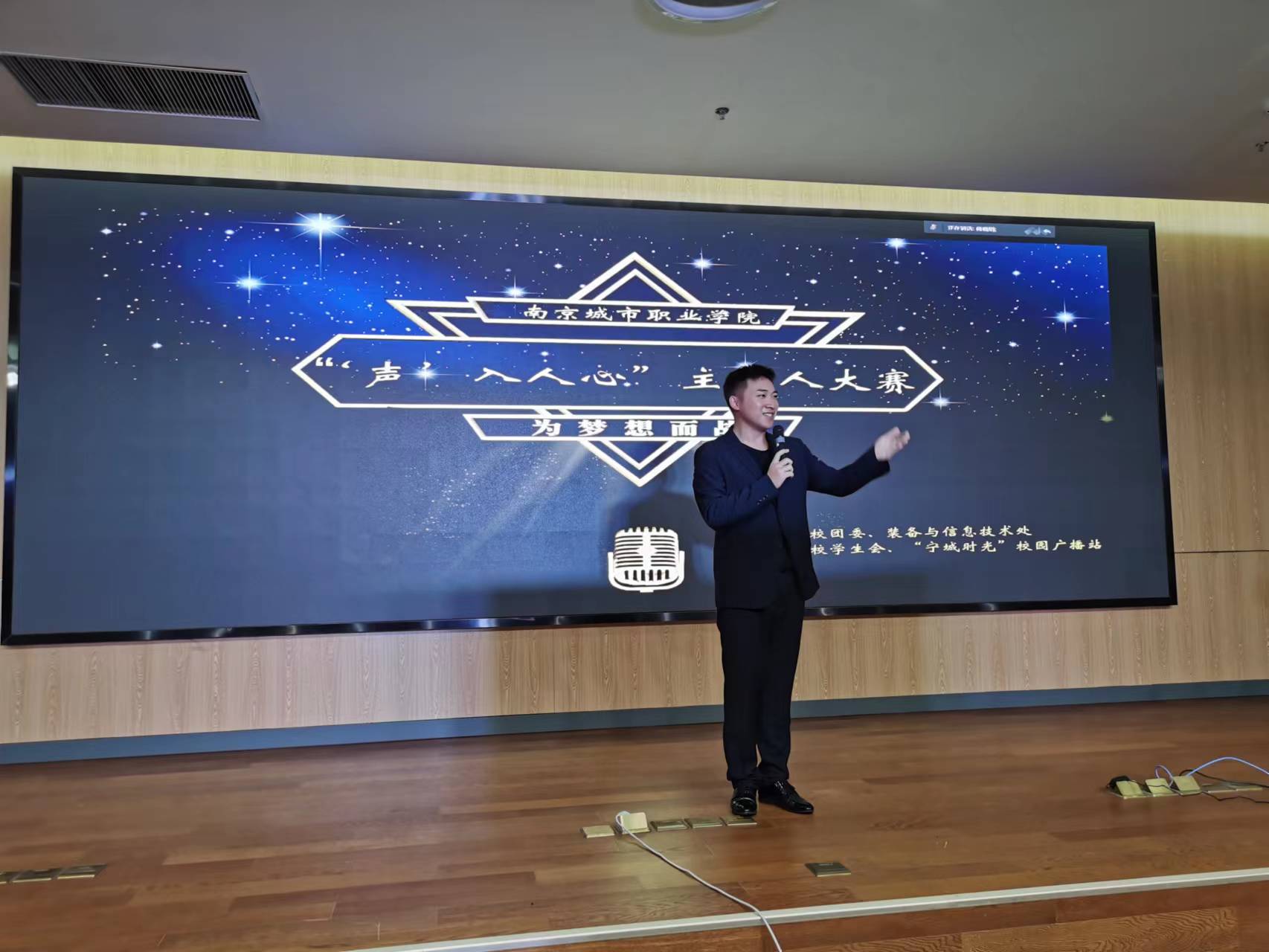 6月3日下午,我校2022年“‘声’入人心”校园主持人大赛在图书馆报告厅举行,四个二级学院共有19名选手报名参赛,大赛由我校2021年校园主持人大赛获奖者唐杰同学主持。本次比赛邀请了校宣传部(统战部)部长朱小蔚莅临现场担任评委,同时,南京广电集团《南京新闻》主播一级播音员钱坤,江苏广电未来金话筒优秀指导教师、南京传媒学院吴桐老师通过腾讯会议平台连线担任评委。