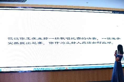 比赛共分两个环节:自我展示和即兴评述。自我展示环节由选手自选主题,有的选手选择了感动人物颁奖典礼主持,有的选手选择了新闻聚焦播报,有的选手选择了红色教育基地游览讲解。即兴评述环节,选手们自主抽取题目,30秒后根据提示的主题内容即兴主持,这一环节特别考验心理素质及综合能力,选手们沉着冷静,娓娓道来,充分展示了他们良好的主持素养和自身实力。舞台上,选手们散发着语言魅力,飞扬着自信风采,洋溢着青春活力。
