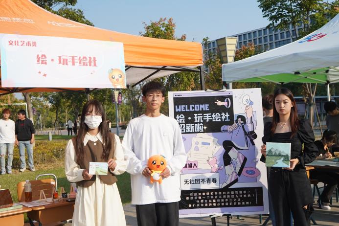 招新现场,学生社团可谓各出奇招,除了通过张贴海报,推出展板等宣传方式,各社团还都拿出了自己的看家绝活,竭力展示自己的社团文化和特色活动。2022级的同学们兴致勃勃地穿梭在各个社团中,参与小游戏、向社团的负责人们咨询招新事宜。