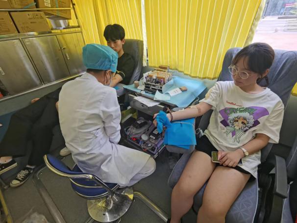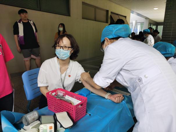 6月6日,我校联合南京市红十字,在生活服务中心广场处开展以“喜迎二十大,青春献热血”为主题的无偿献血活动。全校师生共计348人参与此次献血活动,献血总量达到103030ml。