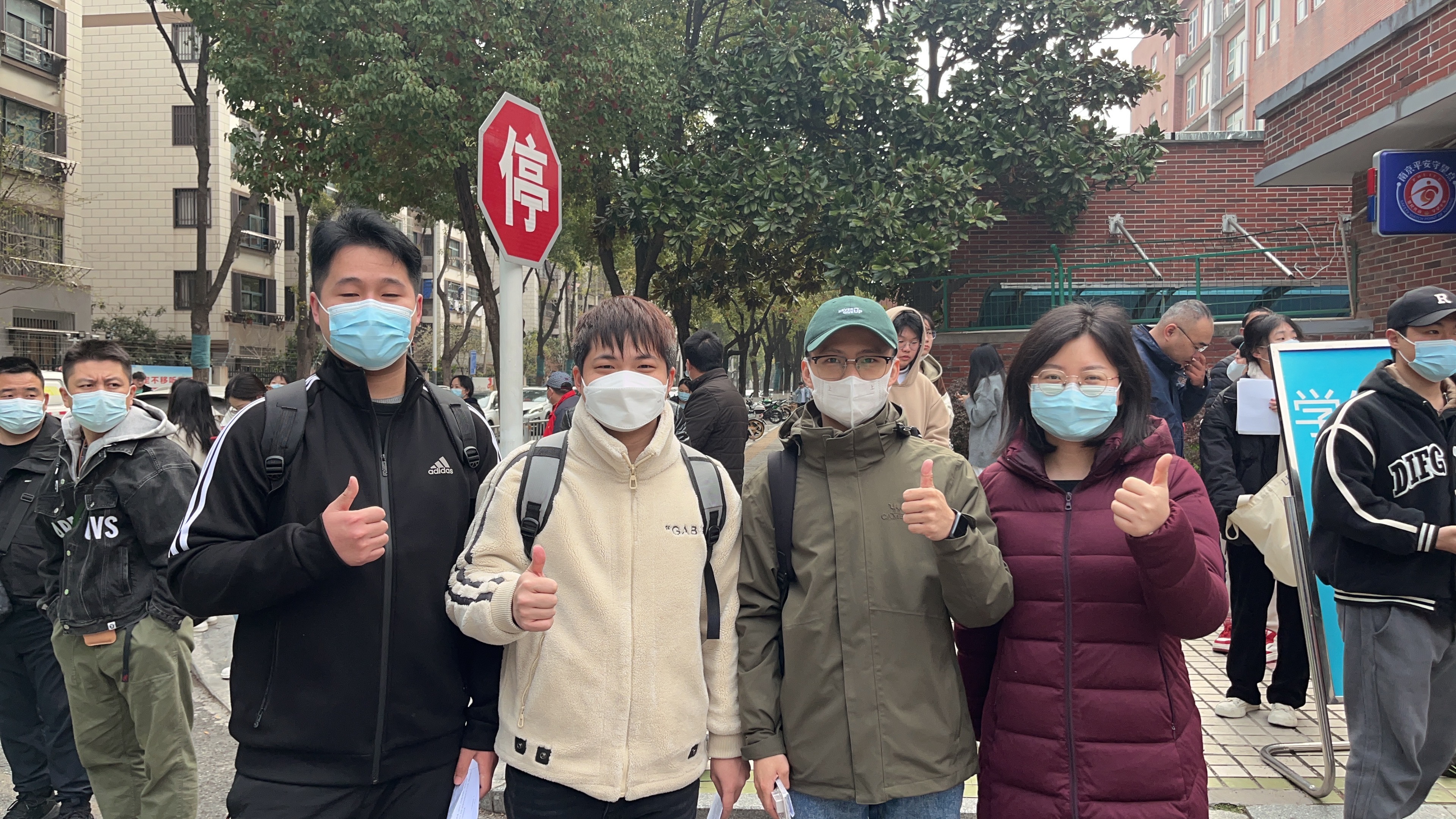 “老师,老师,你们也来啦?”“老师,我好紧张!”“老师,怎么办?我的手一直在抖。”同学们见了老师就像见到亲人一样,一个劲地诉说着自己的心情。“别怕,老师一直在外面陪着你们。”“来,把手交给我,不紧张,什么都不要想,考完就是胜利!”“证件都带齐了吧?”“早饭吃了吧?”一句句嘱托、一句句唠叨,无不透出老师们无微不至的关心。