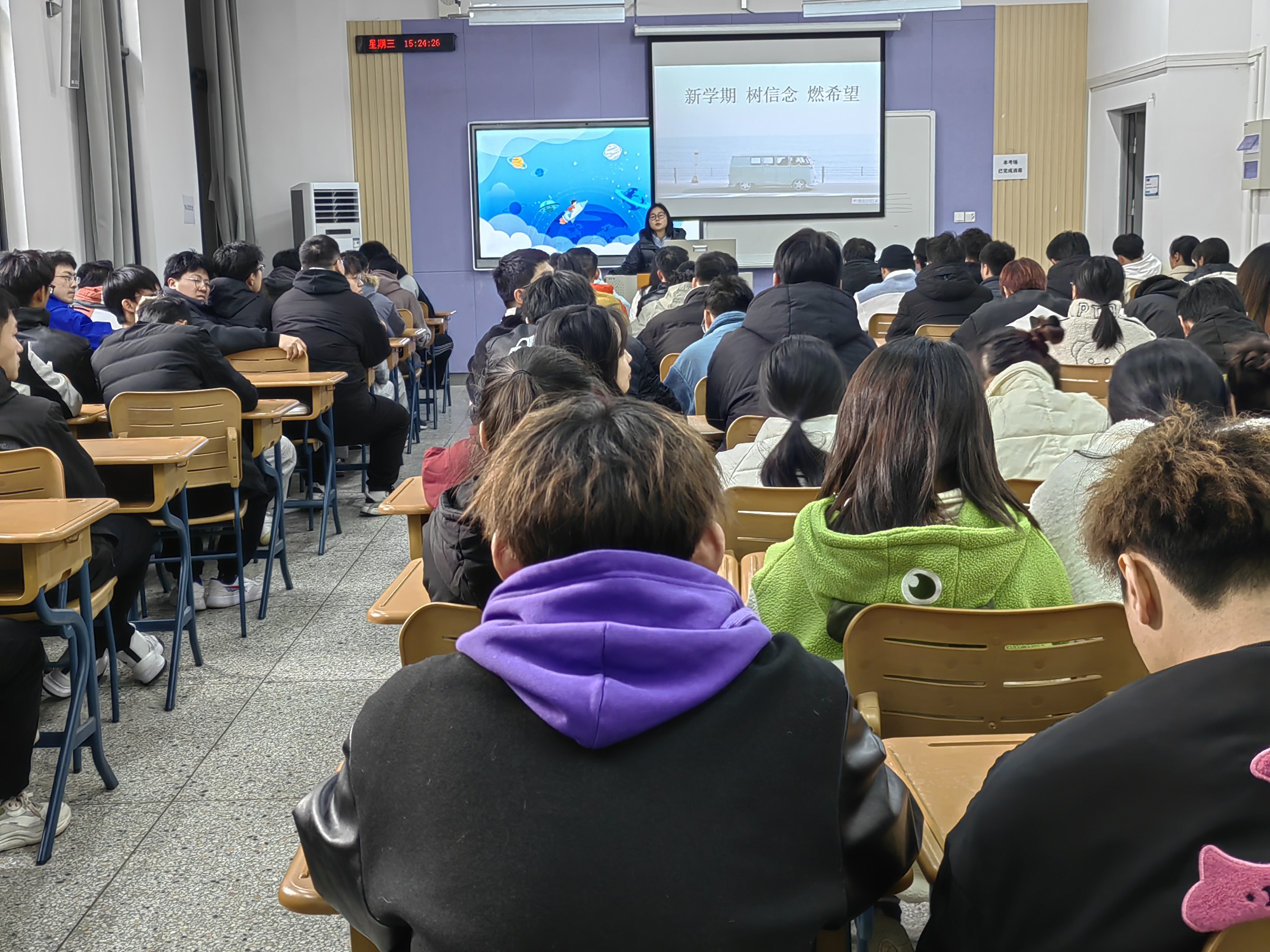 本次班会主要围绕疫情防护教育、心理健康教育、行为习惯养成教育、校纪校规教育、人身安全教育、资助诚信教育等几个方面开展。辅导员老师首先总结了上学期班级工作的经验得失,并提出了新学期在学习、纪律、卫生、安全等方面的要求和目标,号召同学们在新的学期要树信念,燃希望。辅导员老师在班会过程中通过分享案例、引导教育等方式让同学们深刻意识到召开此次主题班会的重要意义。