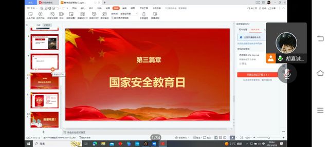 2023年4月28日晚,数字文创学院团总支组织开展“赓续红色基因,担当青春使命”主题信仰公开课,团总支宣传委员胡嘉诚组织学生通过腾讯会议线上学习。