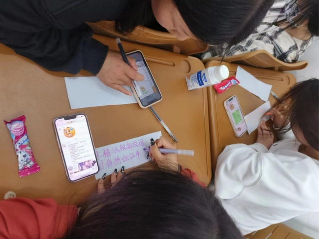 活动中,班级同学一起学习五四精神内涵、当代青年应该如何传承五四精神等,通过重温“五四运动”引导同学们激发热情和斗志,继承和发扬光荣传统。同学们通过主题内容的学习,感悟五四精神,以小组为单位,用彩笔写下青春标语,同时粘上一个棒棒糖,贴在校园里的各个地方,留下足迹。