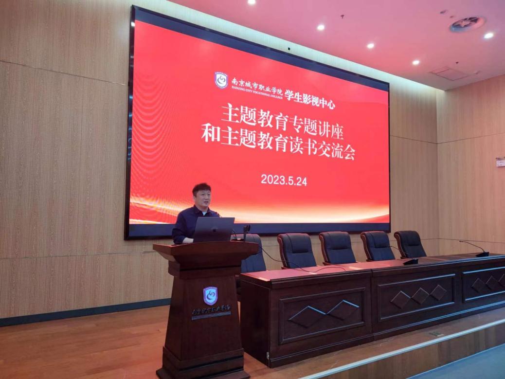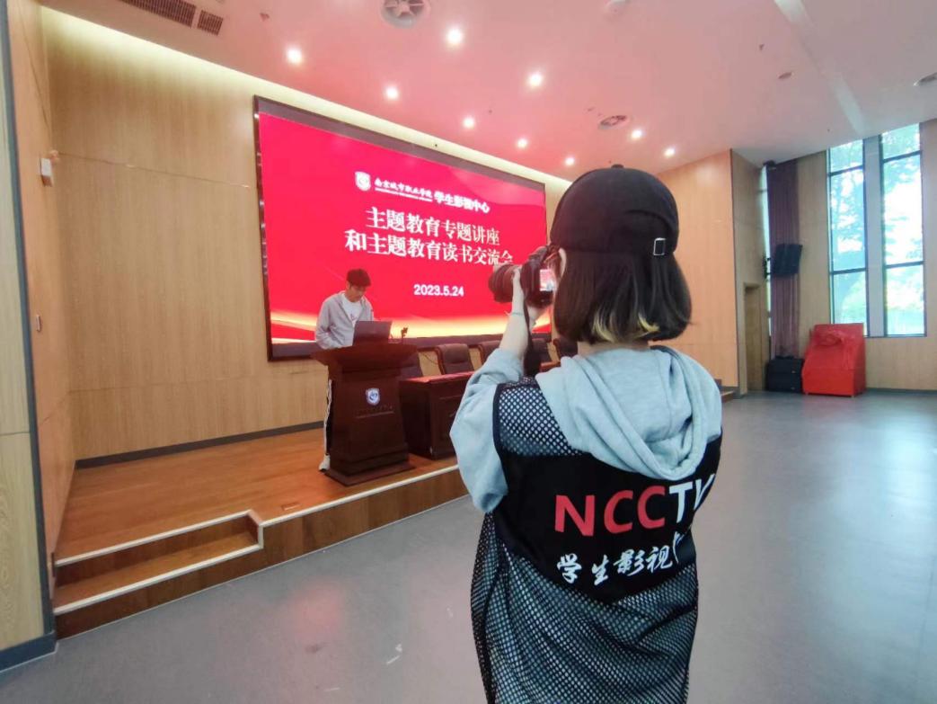 2023年5月24日傍晚,学生影视中心主题教育专题讲座和主题教育读书交流会在学校行政楼报告厅举行。为深入开展学习贯彻习近平新时代中国特色社会主义思想主题教育,帮助新时代青年用习近平新时代中国特色社会主义思想武装头脑,直属第二党总支书记陈卓给社团成员作专题讲座,校团委书记杜文娟出席,71 名学生影视中心团员青年和骨干力量参加。