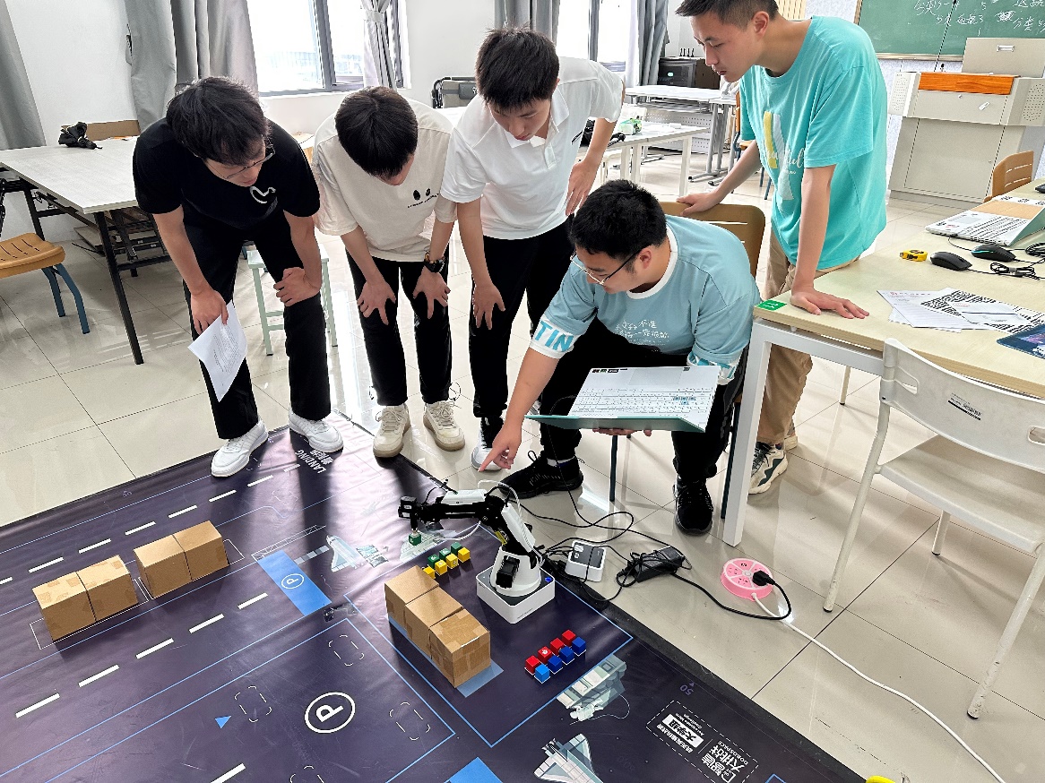 该赛项旨在引导参赛选手结合智能机械臂的 AI 识别、自主控制、机器运动、人机协作及无人驾驶小车的路径规划等多种技术相融合来模拟空间站的空间智能机械系统承担的任务。该比赛我校首次派出三支队伍参加最终斩获一等奖2项,三等奖1项。