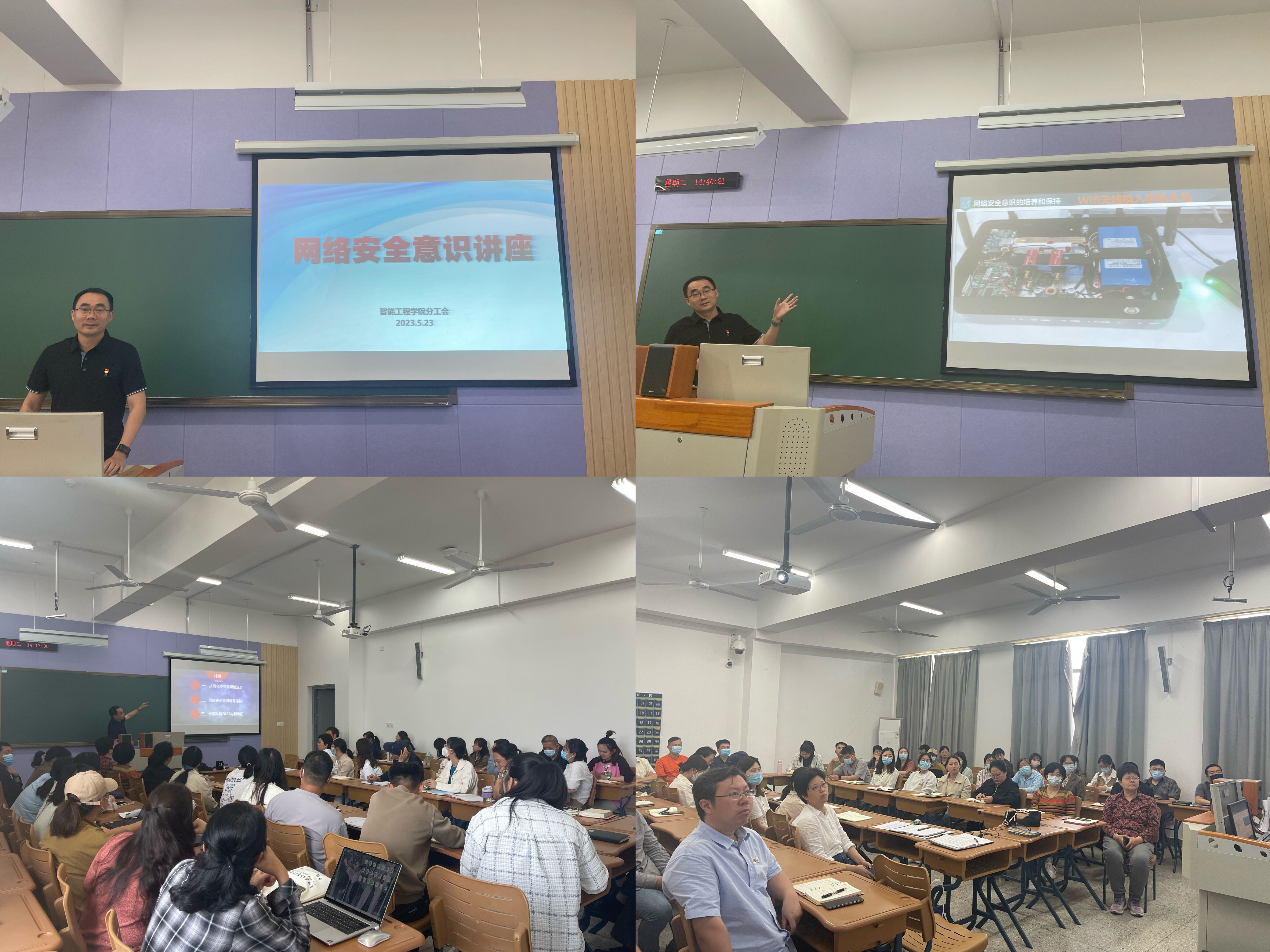 为进一步增强教职员工网络安全意识,营造安全健康文明和谐的网络环境,2023年5月23日下午,智能工程学院分工会特邀请学院专任教师、网络安全专家黄文盛做网络安全意识专题培训。