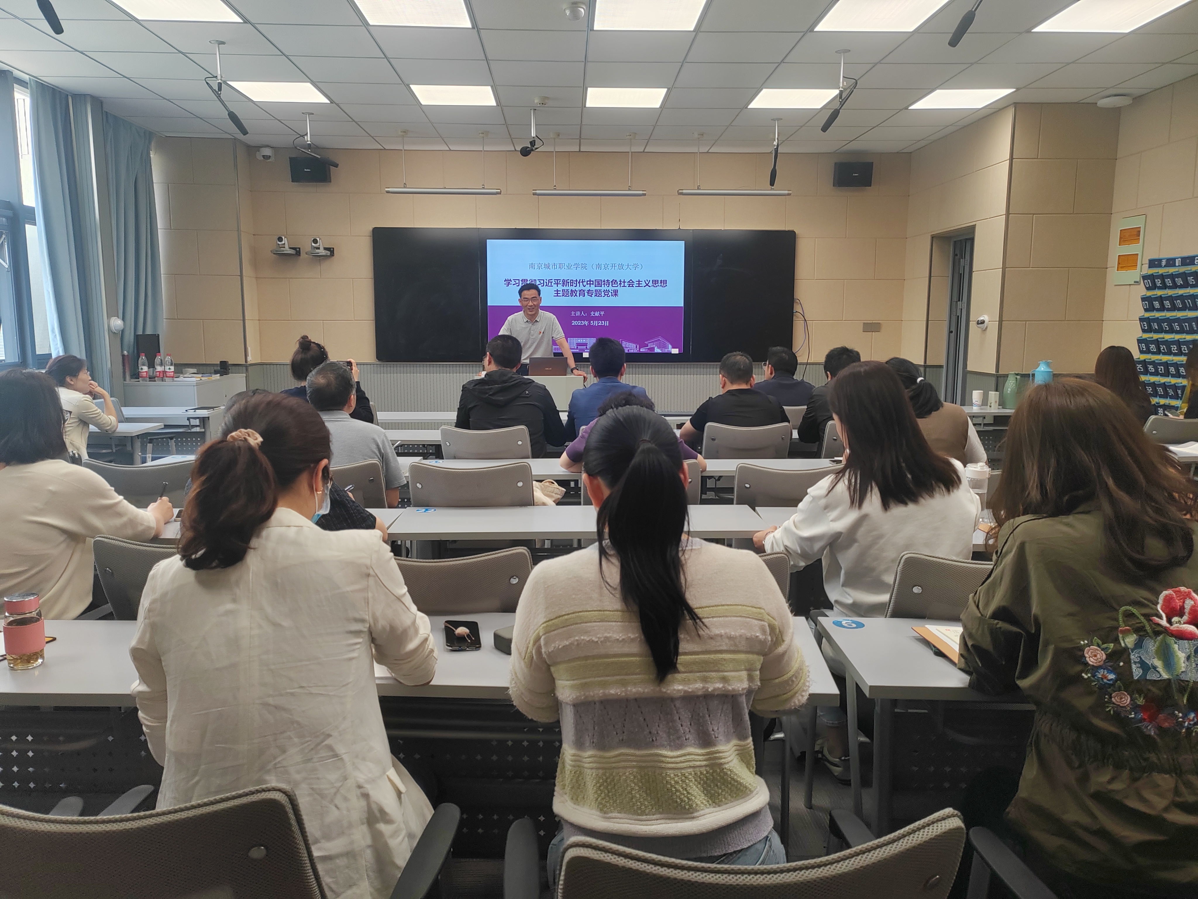 根据市委《关于深入开展学习贯彻习近平新时代中国特色社会主义思想主题教育的实施方案》通知要求,按照学校组织人事部的统一安排和部署,为扎实有效开展主题教育学习教育工作,2023年5月23日下午,在教1楼206录播教室,校党委副书记史献平同志以《贯彻党的二十大精神 关心青年学生健康成长》为题,为康养工程学院全体教师上了一堂精彩的专题党课,市委主题教育巡回指导组成员列席指导。