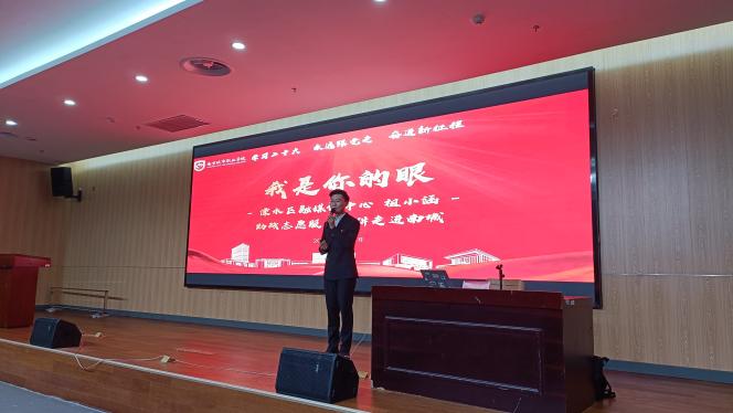 4月14日,南京市溧水区融媒体中心主持人祖小涵老师走进康养工程学院开展“‘你是我的眼’助残志愿服务宣讲会”,校团委书记杜文娟,康养工程学院副书记、副院长陆勤,校宣传部曾伟老师以及学院200多名同学参加了此次宣讲会。