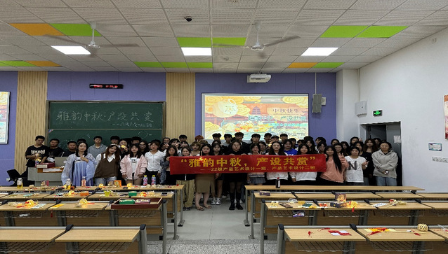 万家邀明月,澎湃家国情。为了喜迎中秋佳节,弘扬中华优秀传统文化,增进同学之间的互动交流,2023年9月24日晚18:00在敬业楼110开展了“雅韵中秋 产设共赏”中秋主题活动。本次活动22级产品艺术设计1、2班全体同学参加。