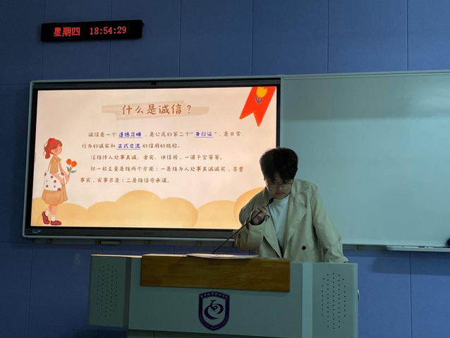 学风是读书之风,是治学之风,更是做人之风。诚信是做人之本,无信则不立。为帮助班级同学培养良好学习习惯,树立和加强科研诚信意识,营造班级良好学风,数字文创学院23级环境艺术设计2班于10月26日利用晚自习时间在敬业楼303教室组织开展了学风、科研诚信教育主题班会。班会由班级学委金宇异主持,班级全体学生参与。
