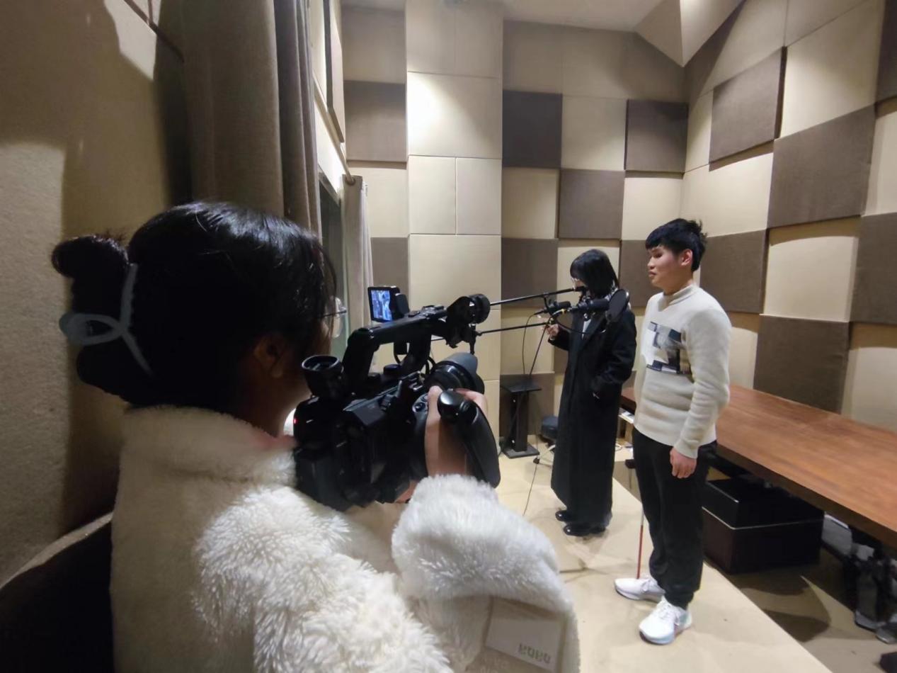 贺博同学是我校2023级的全盲新生,在幼年视神经逐渐萎缩,眼睛最终全盲,目前仅存微弱光感。贺博同学在学习之余喜欢唱歌,并曾在学校带领下前往俄罗斯参加合唱节。学生影视中心在了解到贺博同学的事迹后,对贺博同学克服视障坚持学习的精神非常感动,盛情邀请贺博同学加入学生影视中心。11月14日,学生影视中心团支部书记游舒然代表学影,举行了简短的欢迎仪式,并邀请贺博体验我校校园电视台录音棚。