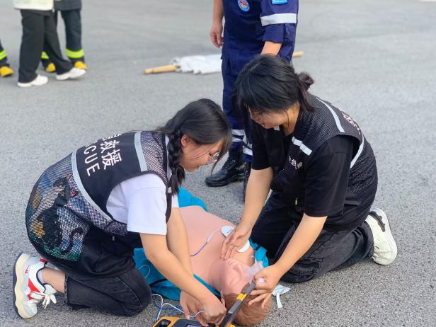 在教官的指导下,学院安全疏散演练活动正式开始。图书馆警报响起时,师生严格遵守安全疏散要求,听从指挥,迅速响应,俯身迅速前进,有序撤离。仅用短短几分钟,120余名师生全部完成撤离,安全到达疏散集合地。随后由同学自行组成的应急抢险组、应急救护组、疏散引导组、警戒疏散组、后勤保障组在专业教导员的培训下,进行了一次消防抢险任务的应急模拟,在亲身参与中,同学们更加了解消防应急处置方法,收获满满。
