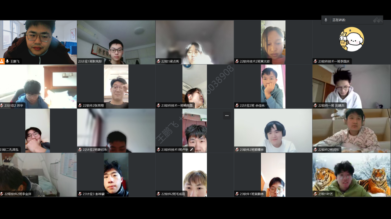 为更好备战今年4月份的“第十五届蓝桥杯全国软件和信息技术专业人才大赛”比赛省赛,智能工程学院Java工作室社团开展假期专项训练。1月25日上午10:00开展第一次线上培训,本次培训由指导老师王鹏飞组织,20余名参赛学生参加。