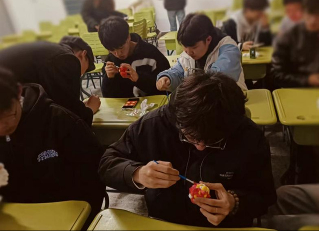 此次活动充分结合同学们的专业特长,让大家在素色的石膏娃娃上自由发挥,绘画填色。作品完成后,大家将自己的创作成果展示出来,互相交流,既大大促进了彼此之间的感情,也提高专业能力,气氛十分融洽。