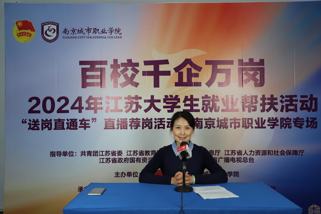 依托“百校千企万岗”2024年江苏省大学生就业帮扶行动,一场直播荐岗活动在招聘会现场同步推进。活动为我校2024届未就业毕业生提供线上求职渠道,同时也与我校就业工作结对共建高校——西宁城市职业技术学院共享岗位信息,共同开拓就业渠道。