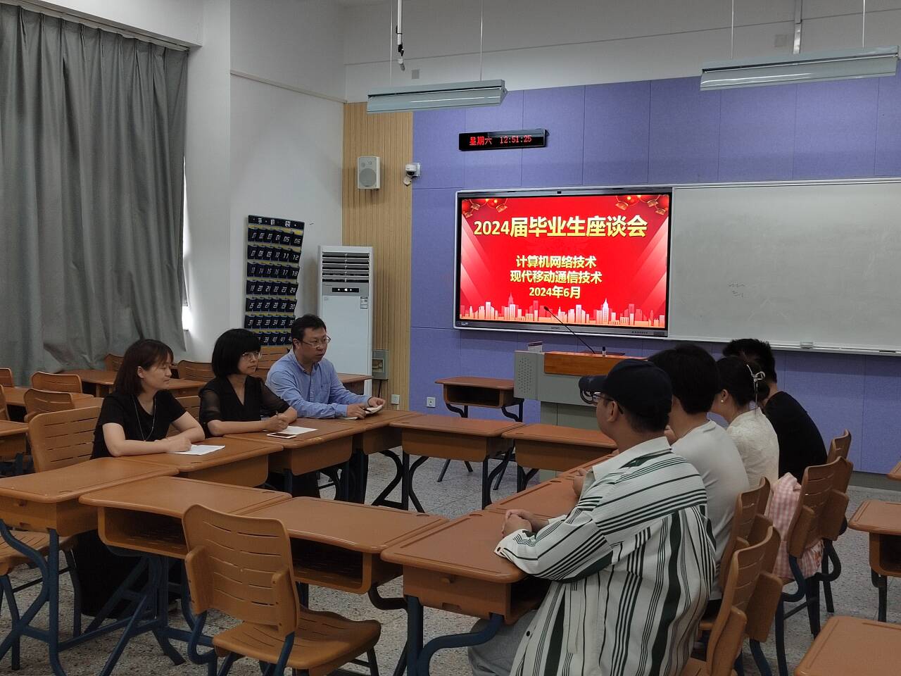 6月22日中午,智能工程学院智能网联教研室在勤学楼215室召开2024届计算机网络技术和现代移动通信技术专业毕业生座谈会。教研室主任桂超、专业教师沈娟娟、朱志慧以及4位毕业生代表出席本次会议。