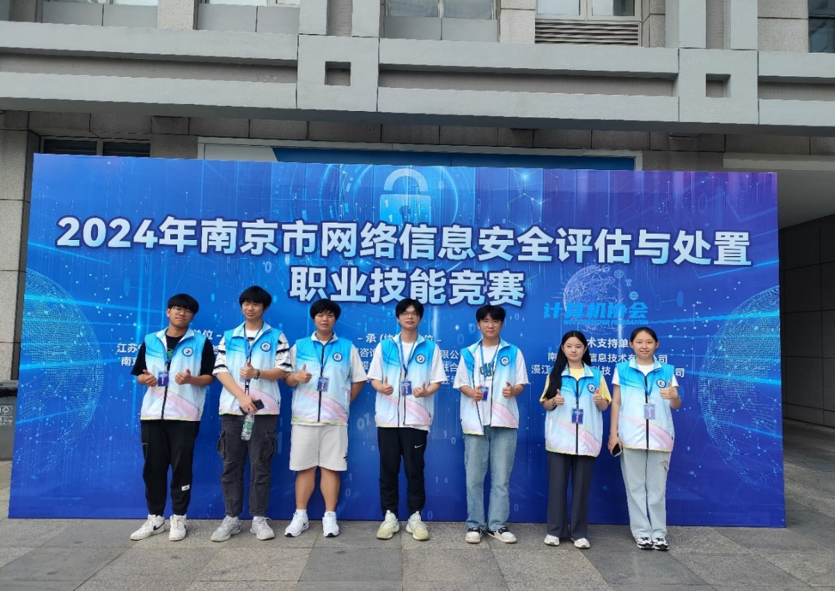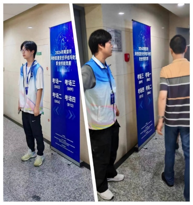 我院计算机协会为本次竞赛提供了志愿服务,选派7名同学全程参与了本次竞赛服务。他们清晨6点就从溧水出发,迎着第一缕阳光,7点前抵达比赛场地,工作包括考场签到、路线指引、考场巡查、技术支持各个方面。在整个活动期间,志愿者们不畏劳苦,积极面对挑战,充分展现了艰苦奋斗的精神风貌,出色表现赢得了主办方的高度评价。