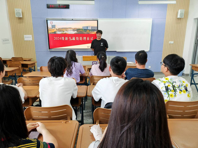 为进一步加强新生班级队伍建设,更好地迎接2024级新生,确保新生班级各项工作能够正常且有序进行,智能工程学院高度重视,于2024年7月1日在溧水校区勤学楼举行2024级新生辅导员助理选拔面试,此次面试由2024级辅导员老师担任评委,55名同学参加了本次面试。