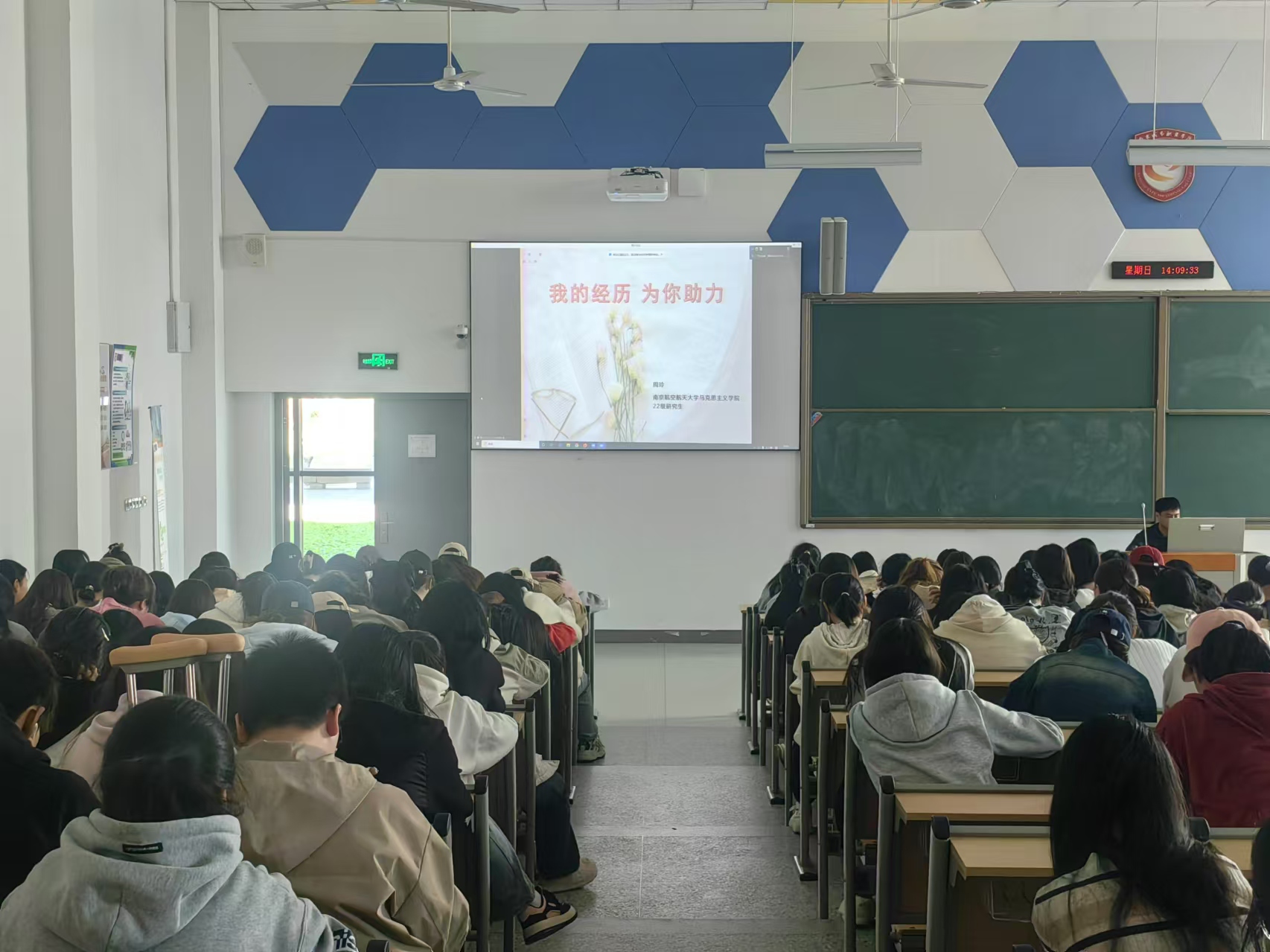 11 月 10 日下午,数字财商学院在厚生楼 101 成功举办了一场别开生面的优秀毕业生经验分享会。此次分享会吸引了 2023 级和 2024 级共 400 名同学参加,现场气氛热烈,座无虚席。