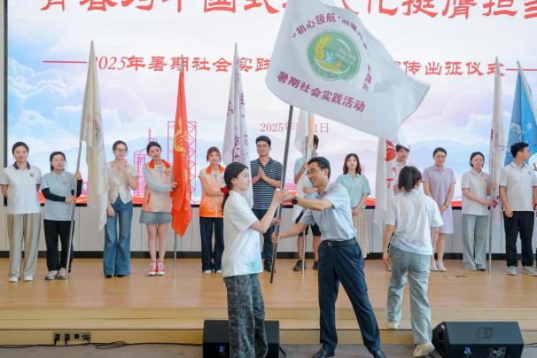 现场,史献平副书记为实践团队代表授旗。