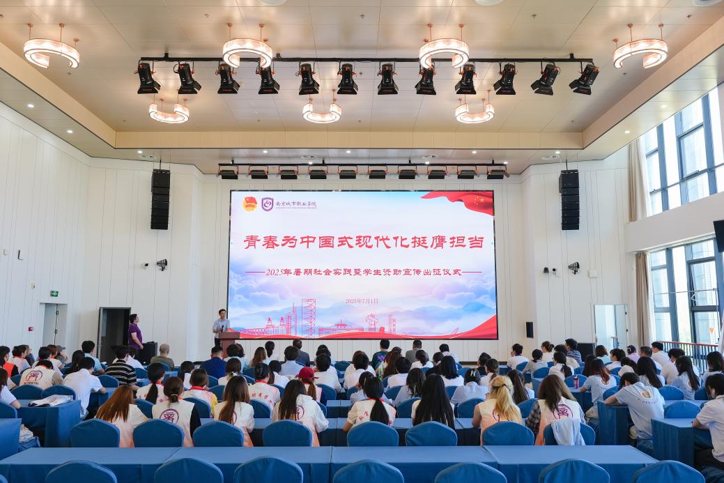 7月1日中午,我校在溧水校区科创楼二楼会议厅举行2025年暑期社会实践暨学生资助宣传大使出征仪式。校党委副书记史献平,党委委员、宣传部部长朱小蔚,相关部门负责人,各二级学院党总支副书记、分团委书记,以及暑期社会实践团队全体师生、学生资助宣传大使参加仪式。