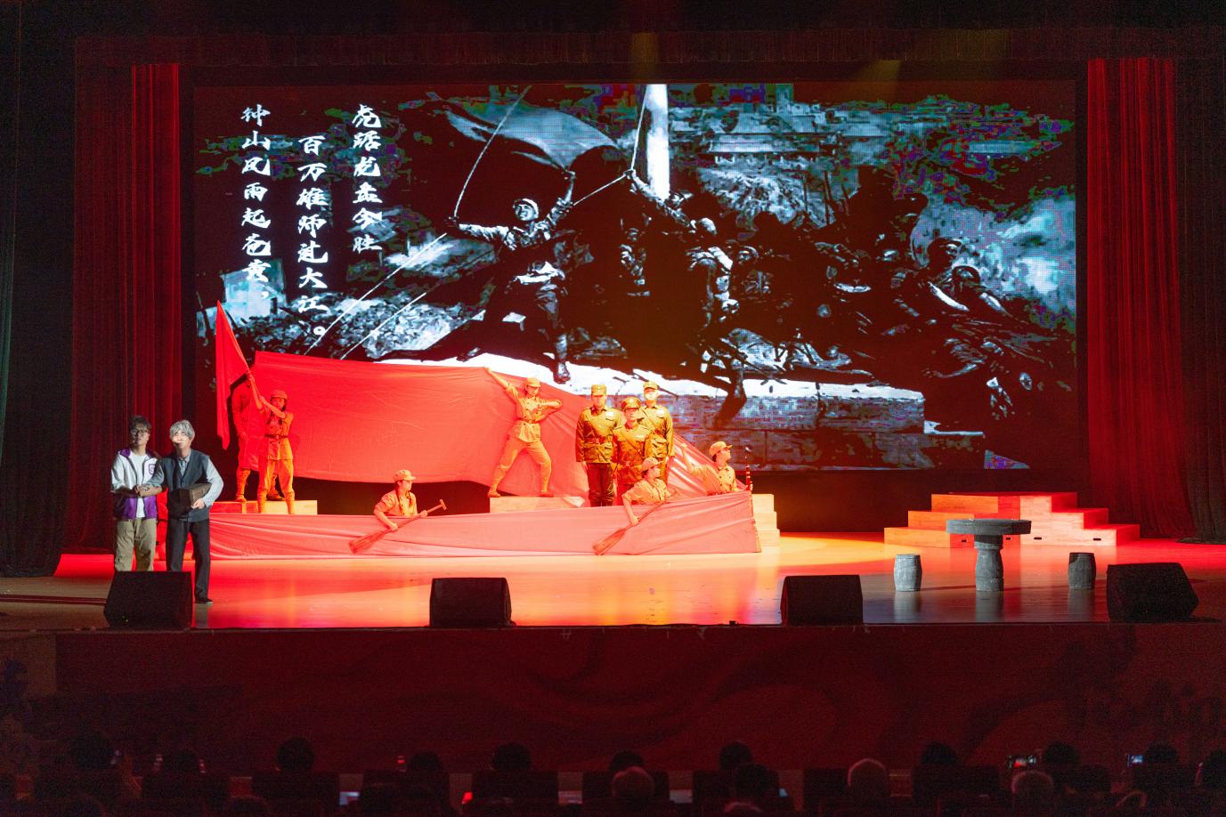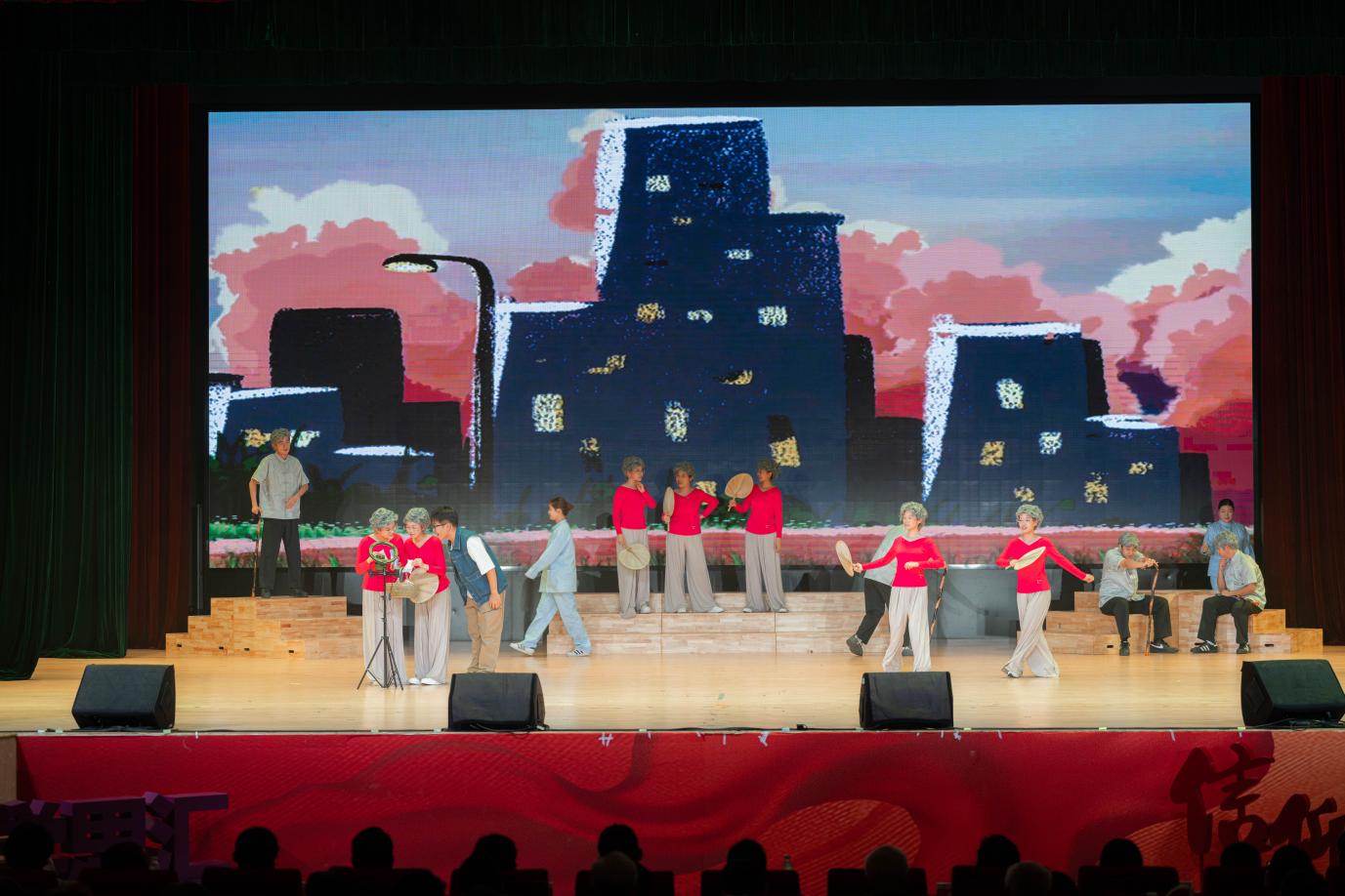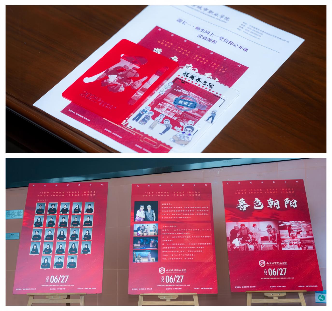 随着灯光渐暗,由我校师生倾情打造的原创话剧《暮色朝阳》拉开活动序幕。这部入围2025年江苏省大戏展终评展演的作品,灵感源于真实生活,巧妙融合了校地下党员老校长、优秀校友等育人故事。以青年学生陈暮阳投身养老服务实践并实现精神蜕变为主线,聚焦红色基因传承、生命尊严关怀、代际冲突和解与职教价值展现,生动展现了职业教育在服务社会民生、应对人口老龄化国家战略中所迸发的独特价值与温暖力量。舞台上,演员们用真挚的表演,将一个个鲜活的角色呈现在观众眼前,带领大家穿越时空,感受信仰的力量。