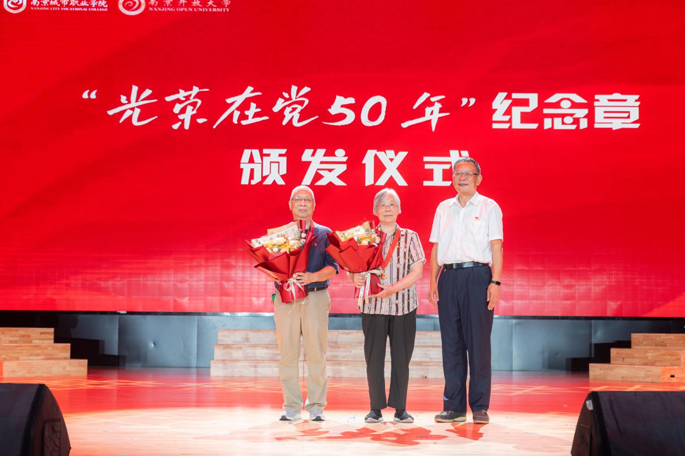 活动现场,还举行了庄严的“光荣在党50年”纪念章颁发仪式。校党委书记孙朝晖为任佳星、陈吉云两位党龄50年的老党员颁发纪念章。沉甸甸的纪念章,是历史的见证、光荣的勋章、忠诚的烙印,闪耀着共产党人历久弥新的精神光芒,激励着在场师生坚定信念、勇毅前行。