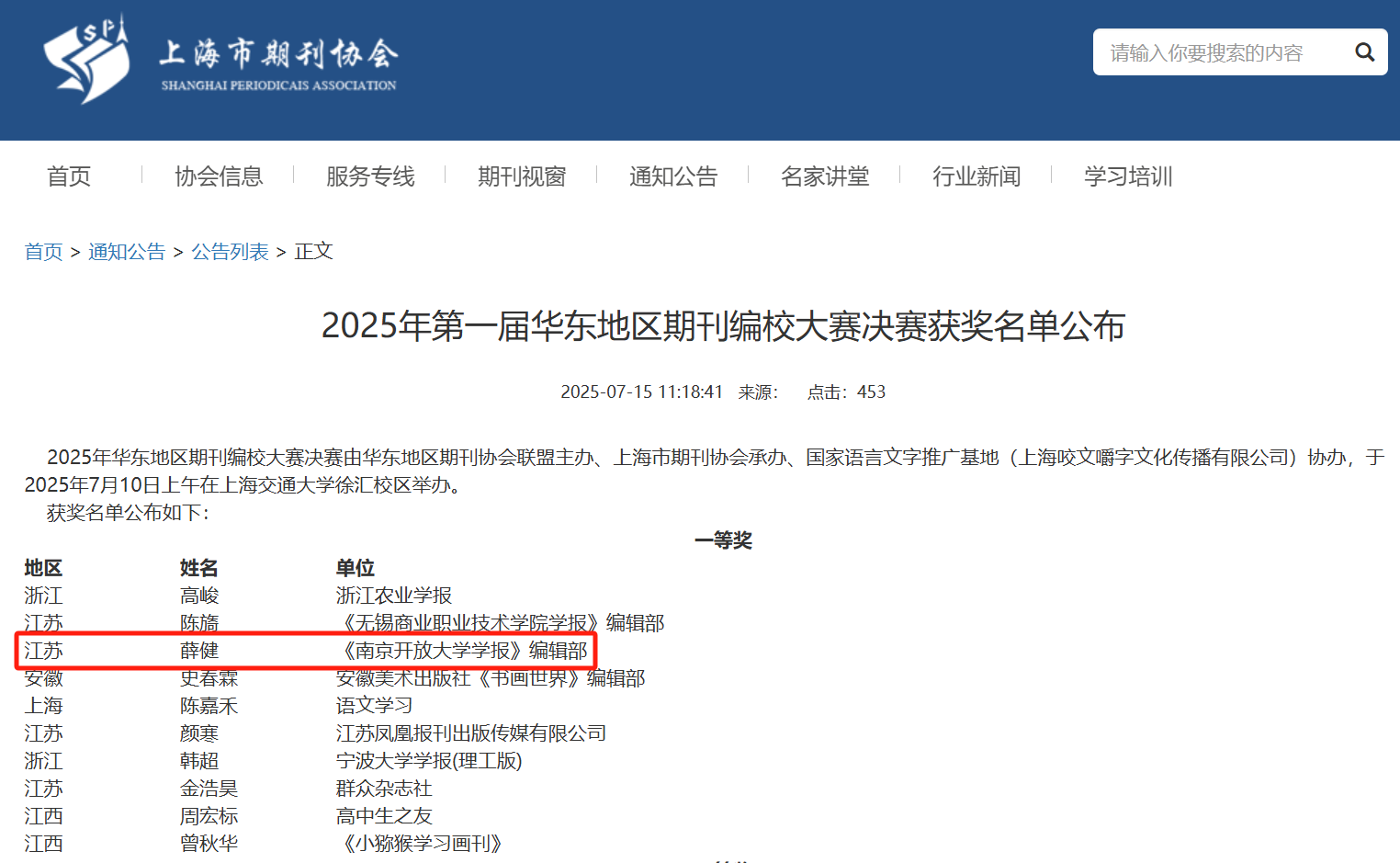 上海市期刊协会网站获奖名单