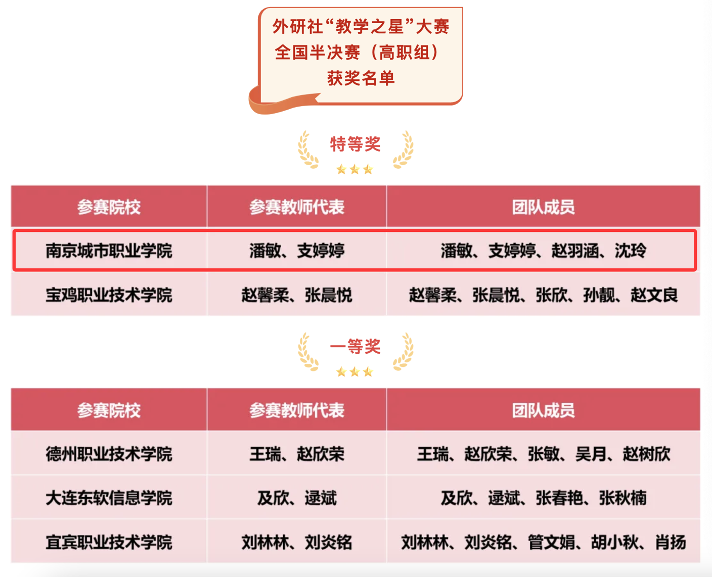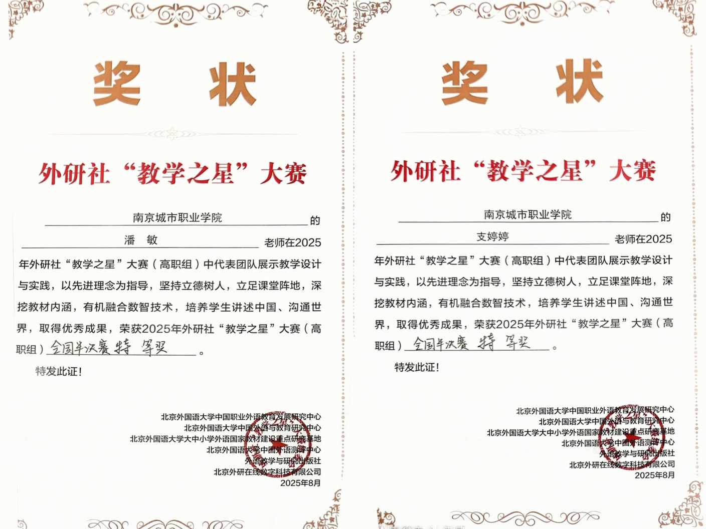 备赛阶段,团队成员充分利用假期时间通力合作,不断优化教学设计,多轮打磨展示内容。此次取得特等奖佳绩,不仅展示了我校英语教师卓越的专业素养和教学能力,还彰显了我校在师资培养与教学改革方面的显著成效。下一步,公共英语教研室将继续“以赛促教、以赛促学”,提升教学技能,创新教学方法,进一步提高教学质量,深化育人成效,争取再创佳绩。