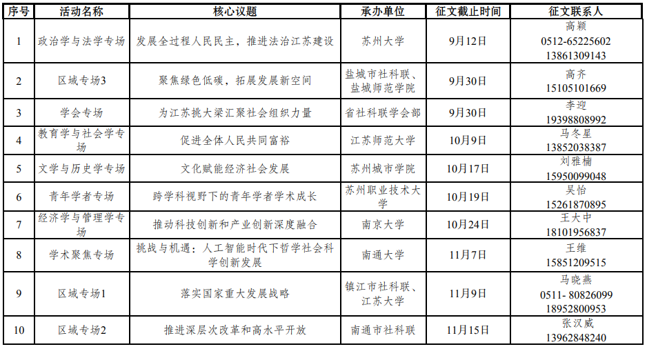 为深入学习贯彻习近平新时代中国特色社会主义思想,全面贯彻党的二十大和二十届二中、三中全会精神,全面落实省委十四届九次全会精神,根据江苏省哲学社会科学界联合会《江苏省社科界第十九届学术大会有关专场征文通知》中共江苏省委宣传部、江苏省哲学社会科学界联合会共同举办江苏省哲学社会科学界第十九届学术大会。本届学术大会将聚焦学术前沿、促进学科交流、推动理论创新、服务科学决策,为推进中国式现代化江苏新实践、推动江苏在高质量发展上继续走在前列营造良好的思想理论氛围、提供智力支撑。