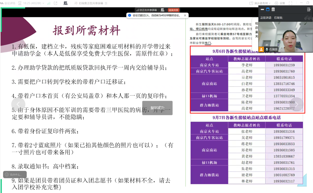 校党委副书记史献平通过视频的方式,向新生及家长致以诚挚欢迎,并且从“铁心优越的硬件与软件”“细致严格的教育与管理”“双道畅通的就业与发展”“家校合作的希望与建议”四个方面,详细介绍了我院的整体情况,包括学校的历史、师资力量、教学设施以及校园文化,强调了学校的教育理念,就深化家校协同育人提出具体建议,并表达了对新生成长成才的殷切期盼。接着,辅导员、班主任明确告知了新生报到所带材料、报到时间地点以及相关安排,确保新生报到工作顺利进行。