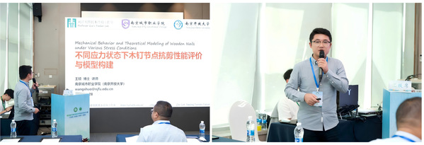 在绿色加工会场报告中,我校数字文创学院王硕老师以《不同应力状态下木钉节点抗剪性能评价与模型构建》为题,系统展示了现代木质工程材设计研究领域的最新进展。研究基于详实的实验数据,深入分析了不同应力状态下木钉节点的抗剪性能,构建了具有较高精度的预测模型,为提升木结构节点设计的可靠性及工程应用的安全性提供了重要的理论依据与实践参考,引发了与会专家的广泛关注与深入讨论。