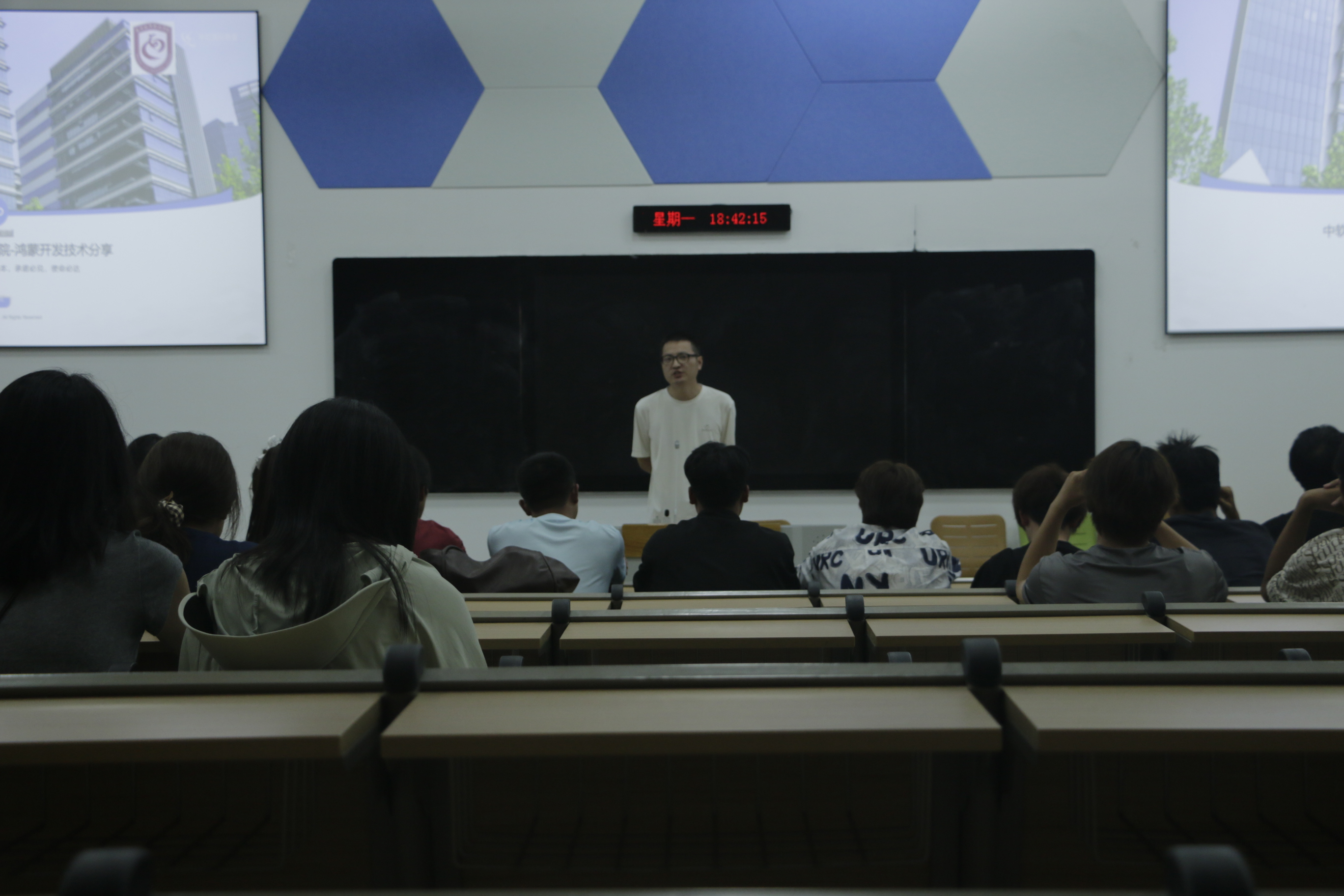 讲座中,杨杰从信息技术发展历程出发,回顾了从大型机时代到移动互联网的技术演进,重点介绍了云计算、大数据、人工智能等新一代信息技术的特点和应用。刘毅祥则聚焦鸿蒙操作系统,讲解了其分布式架构、跨设备协同等核心技术特性,并结合实际案例展示了鸿蒙在智能家居、车载系统等领域的应用前景。