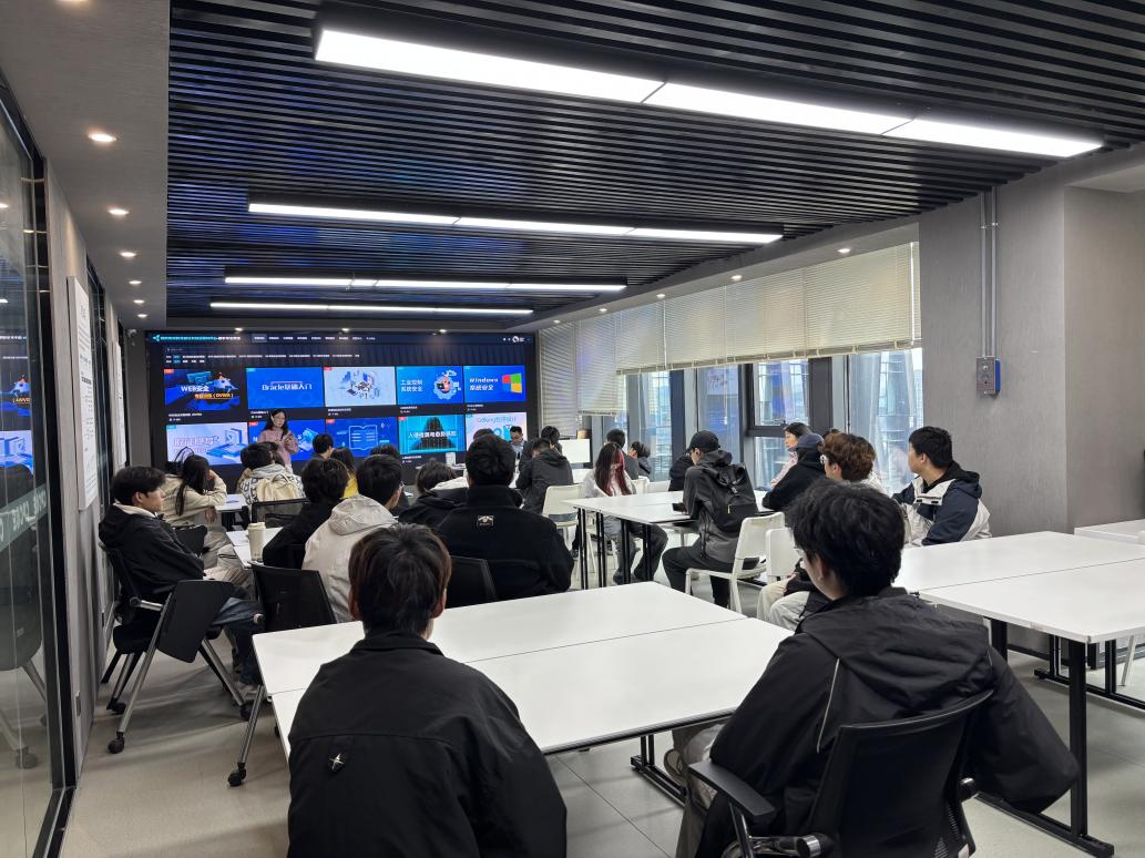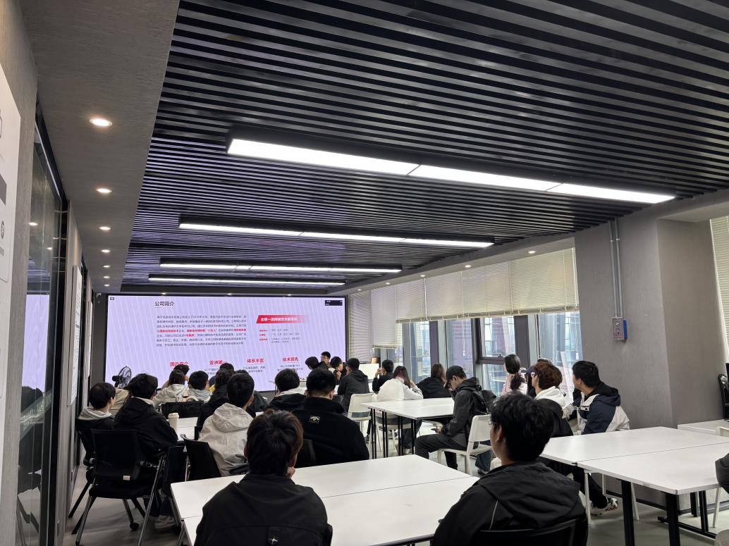 本次活动环节丰富,从多角度助力学生进行岗位认知。第一个环节由赛宁网安安排的专业讲解人员讲解中国网络安全发展历史,介绍网络行业最新技术创新成果,让学生们有机会近距离体验网络攻击防御技术,了解公司在网络安全领域的业务覆盖和技术实力;第二个环节由智能工程学院已毕业在赛宁工作的学姐林亿曦进行经验分享。她从同专业学姐的角度为学生介绍本专业的发展方向和竞赛经验;第三个环节由赛宁企业讲师为学生介绍计算机网络技术专业的前景、考证规划和实习思路,让学生明确了努力的路径和方向。