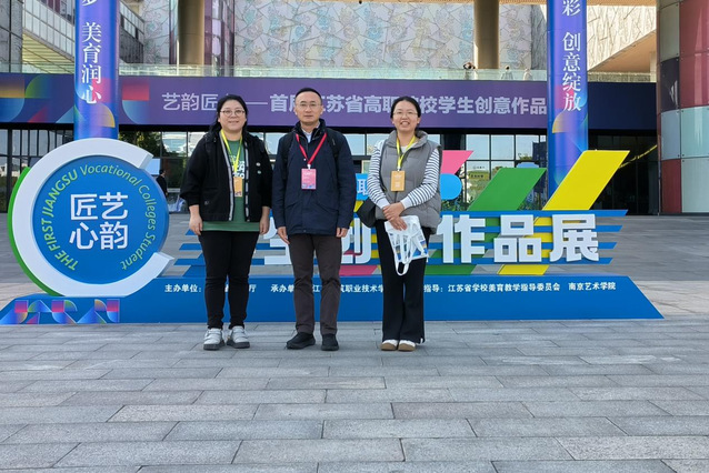 10月23日,由江苏省教育厅主办、江苏建筑职业技术学院承办的“艺韵匠心”首届江苏省高职院校学生创意作品展在徐州艺术馆开幕。我校副校长陈正宇、数字文创学院副院长陈婧、通识教育学院综合素养教研室顾涛老师共同出席开幕式并参与观展活动。