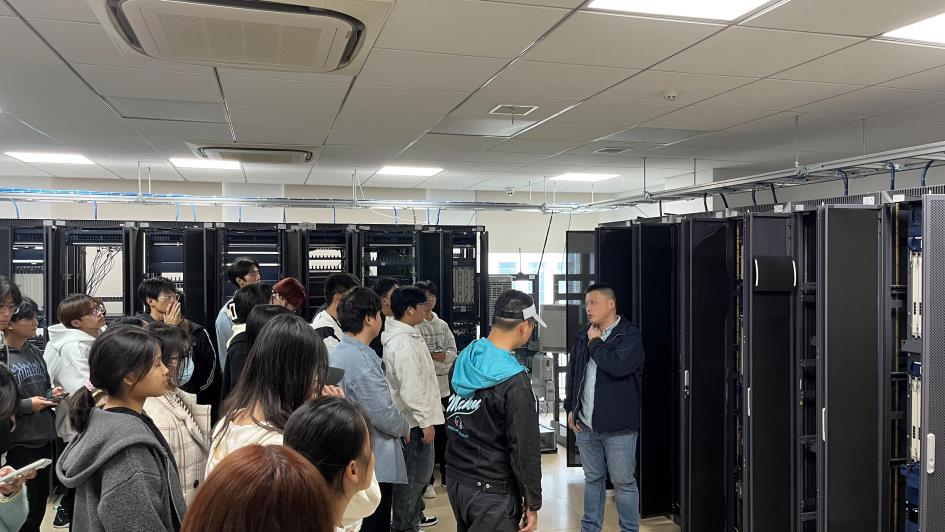 随后,新生们走进中心机房。在技术人员指引下,大家近距离观察服务器集群、数据存储设备及智能监控系统,了解机房环境管控、数据安全防护的实操流程。