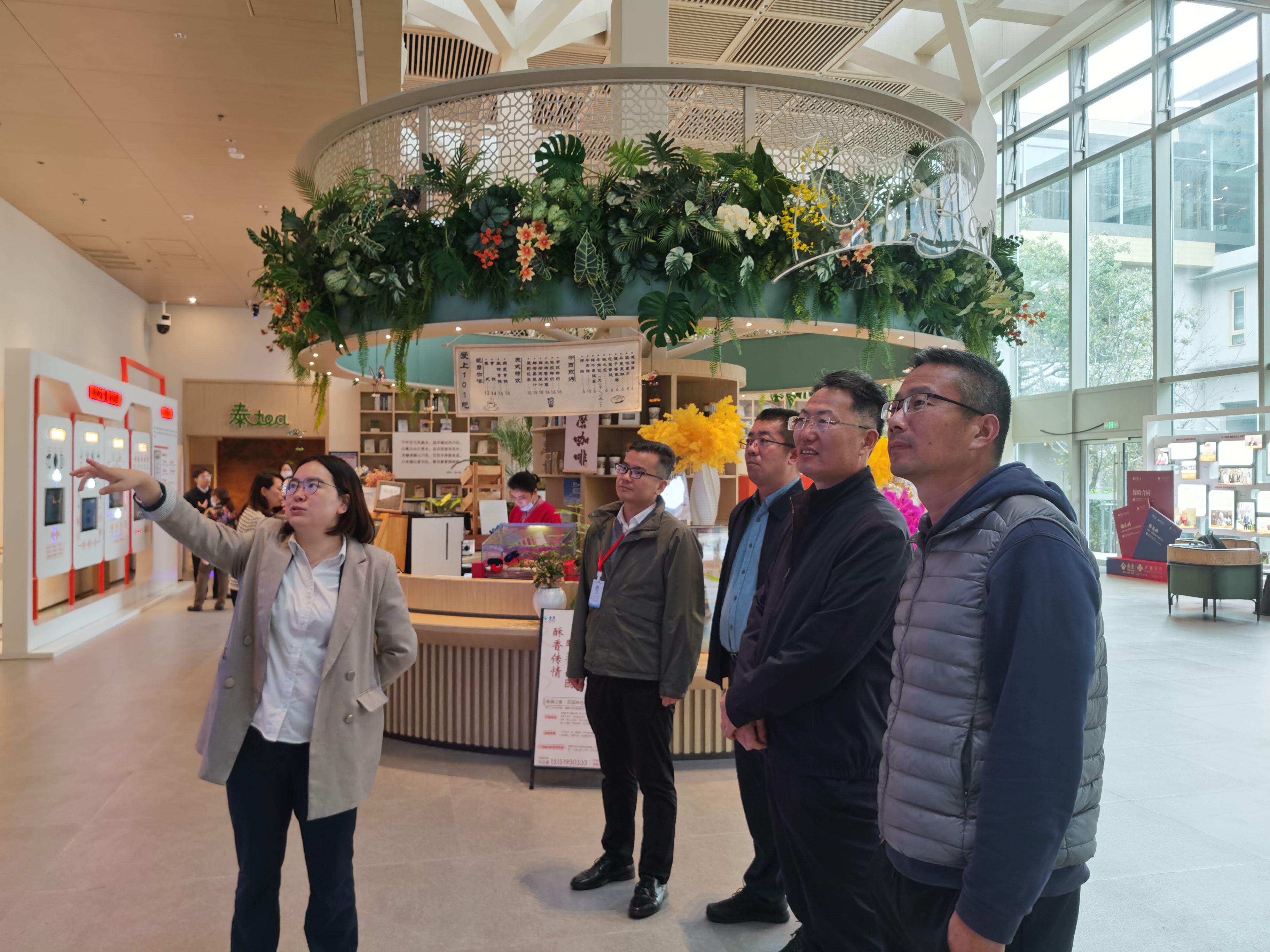 狄勇院长一行,参观了以“秦淮脉络”为设计概念主线打造的“走街串巷,漫步田园”一体化康养社区和集四季花厅、餐饮中心、文娱中心、老年大学、康体健身中心等多功能为一体的7000平米的活力中心。