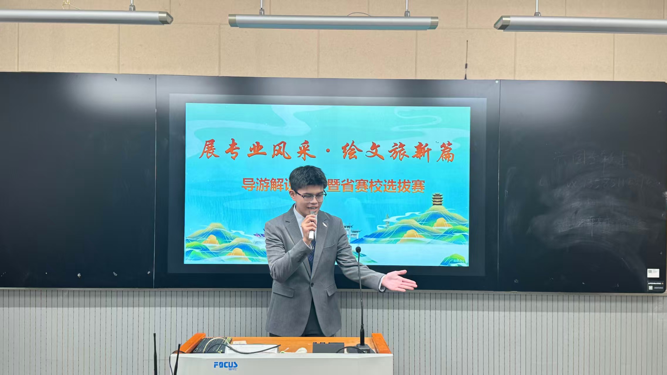 2025年10月28日下午,suncitygroup太阳新城2025年导游解说比赛暨2026年江苏省职业院校技能大赛导游服务赛项校内选拔赛在敬业楼306教室举行,本次赛事旨在提升学生专业实践能力与综合素养,为省级技能大赛储备优秀人才。康养工程学院党总支副书记、副院长陆勤、吴良勤,旅游教研室主任李海霞,专业负责人王文婧以及旅游管理专业徐菊、张荣娟老师担任本次决赛评委。