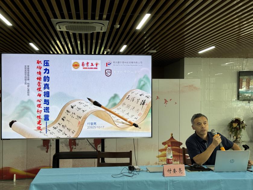 为积极响应南京市总工会“宁工悦心”心理健康服务计划,10月17日,南京市劳模、康养工程学院“康养先锋讲师团”成员付奎亮老师受六合区总工会邀请,开展了题为“压力的真相与谎言—职场情绪管理与心理韧性建设”专题讲座,六合区近百名企业职工代表参加。