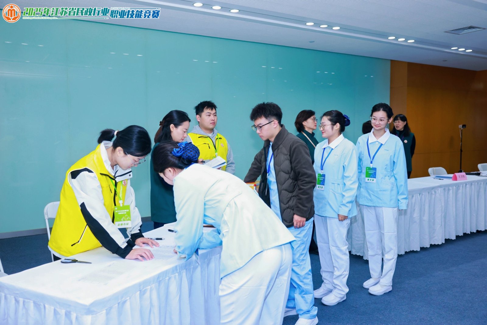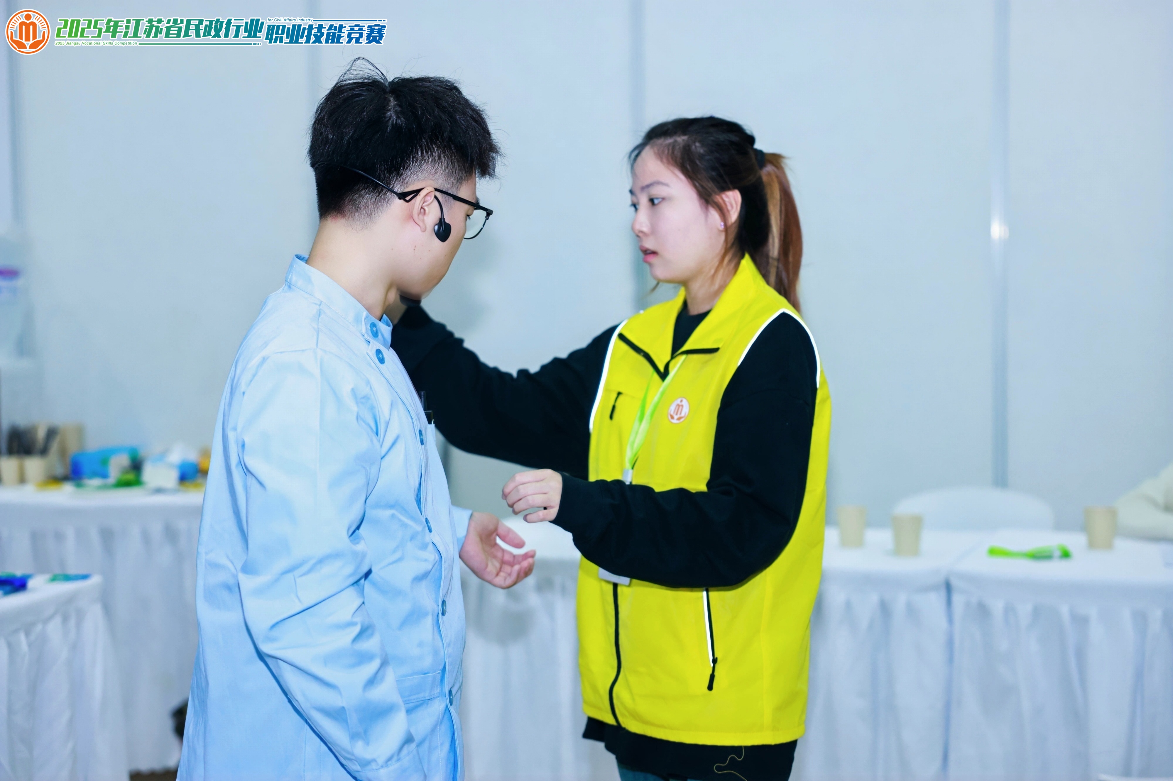 作为江苏省民政行业规格最高、影响力最广的标志性赛事,本次大赛旨在全面提升养老护理从业人员的专业技能水平,推动养老服务行业高质量发展。来自全省14支代表队的56名选手齐聚赛场,同台竞技。为保障大赛顺利进行,我校选派了一支由专业教师与学生组成的15人志愿服务团队,为赛事提供了专业、高效的服务支持。