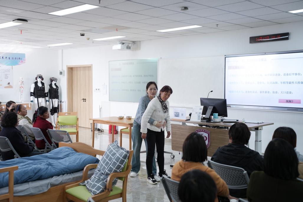 “交汇点新闻”“学习强国”等媒体平台则突出我校“校内虚实结合,校外真岗实战”的立体化实践网络。例如,与江苏瑞芝康健养老产业集团共建实体化“产业学院”,联合编制《智慧健康养老产教融合基地建设与运行规范》,成为省内首个智慧养老产教融合标准。此外,学校通过“企业浸润周”“移动课堂”等形式,让学生深入养老机构、社区一线,在双导师指导下完成真实任务,实现“毕业即熟练工”。